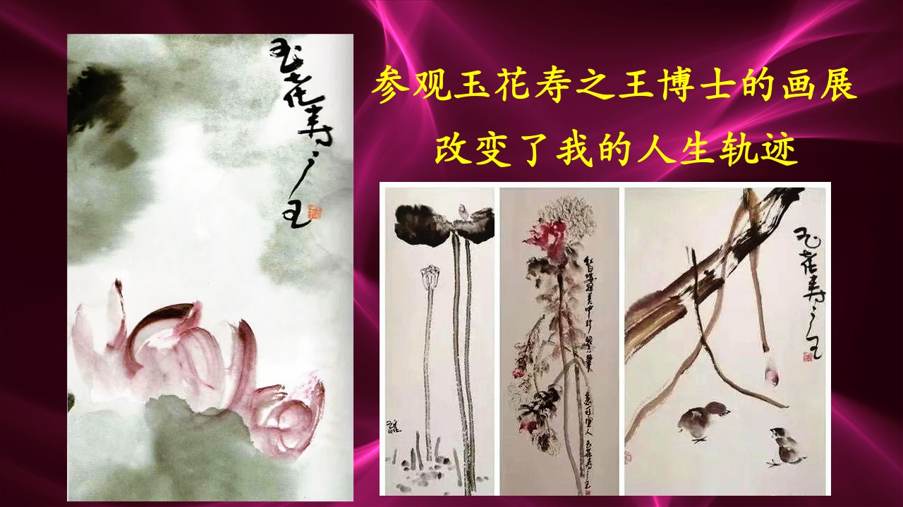 参观玉花寿之王博士的作品心境的变化直接导致我的人生轨迹发生改变。如果没有这次画展,这会儿,我或许正忙着去天南地北寻找出版社出版自己的书,就像当年为出版第一本书而奔波。但现在,我决定不再出书了。稳坐家中,闲来无事,可以写写大字,写写文章,学学画画……是这次画展让我的心境归于平淡,改变了我的写作方向!哦! 历史上可有一次画展改变过一个人的前途命运? 也许没有! 如果过去没有,不等于今天没有! 不等于永远没有! 画展结束,我预订了王博士三幅复制签名画作,分别是《佳肴》、《归真自童心,枇杷出黄金》及《向日之莲》。我预订的不是画,而是一片光明与美好! 我想借此来表达感恩的心。借此机会,我给当代所有的画家们做一次代言人:随着高科技发展,复制签名画和原创作品相差无几,一样有收藏价值。因为当一位画家为其复制作品签名时,他是慎重又慎重,为前途名誉计,稍有瑕疵,都会拒签。当然,无论如何,还是原创作品更有珍藏价值。我在仰望星空,真心祈求今生有能力得到一幅玉花寿之王博士的原创作品,这将是我人生中最幸福的事。