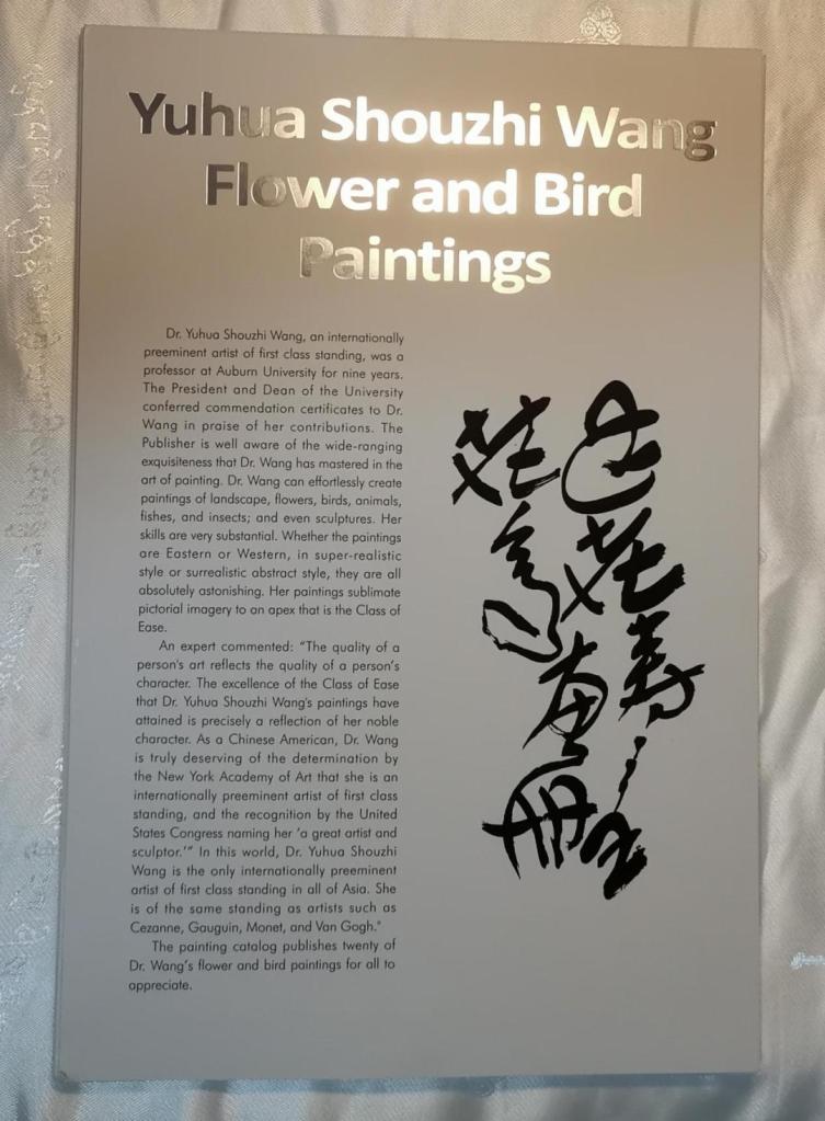 玉花壽之王教授是一位創作勤奮,在國際藝壇上影響很大的美籍華裔藝術家。她自幼即雅擅丹青,在中國水墨繪畫和油畫上功力深厚,尤其對八大山人、吳昌碩、齊白石以降的文人畫大寫意傳統造詣精深,在油畫上深入研究倫勃朗、梵高等歐洲大師們的風格,基礎十分紮實,達成了超寫實的意境,再演化為抽象藝術的發展,直至最終形成了自己的意象自然派風格。1999年遠涉重洋,來到美國定居生活後,玉花壽之王教授在佐治亞州的奧本大學人文學院擔任研究教授長達九年時間,她又在色彩研究上碩果累累,得到大家高度讚揚,同時,遊歷歐洲,砥礪耕耘,成績斐然,以自己卓越的藝術成就在大洋彼岸得到廣泛讚譽和肯定。鑒於她中西畫的造詣成就極深,2013年聯合國教科文組織授稱她的作品為“WFUCA2013”,2019年紐約藝術學院評審她的畫,授稱她為“國際級第一級藝術家”的頭街,2020年12月,聯合國教科文組織美國委員會授稱她“國際級第一級藝術家”的頭銜和勳章,證書注明她在國際級第一級藝術家中是最頂尖的。